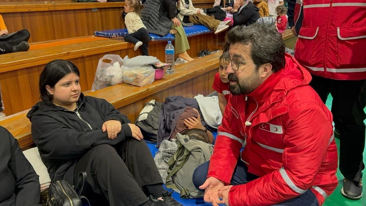 Küçükçekmece Sosyal Hizmet Merkezi Müdürlüğüne bağlı psikolojik danışmanlar, okulun spor salonunda aileleriyle toplanan vatandaşlara destek sağladı.