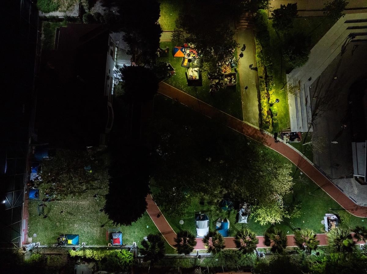 Belediye ekipleri, geceyi parkta geçirecek vatandaşların ihtiyaçlarını karşılamak için çalışmalarını sürdürürken, alana mobil ikram araçları yönlendirildi.