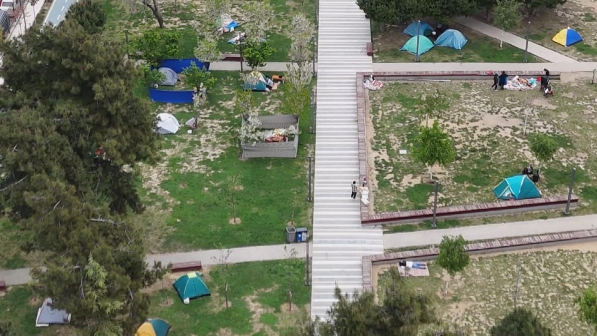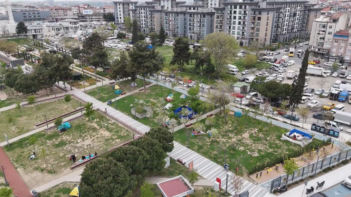 Megakentte yaşanan 6,2 büyüklüğündeki deprem sonrası tedirgin olan bazı vatandaşlar, geceyi açık alanlarda geçirmek üzere Esenyurt'taki Dr. Mimar Kadir Topbaş Parkı'na geldi.