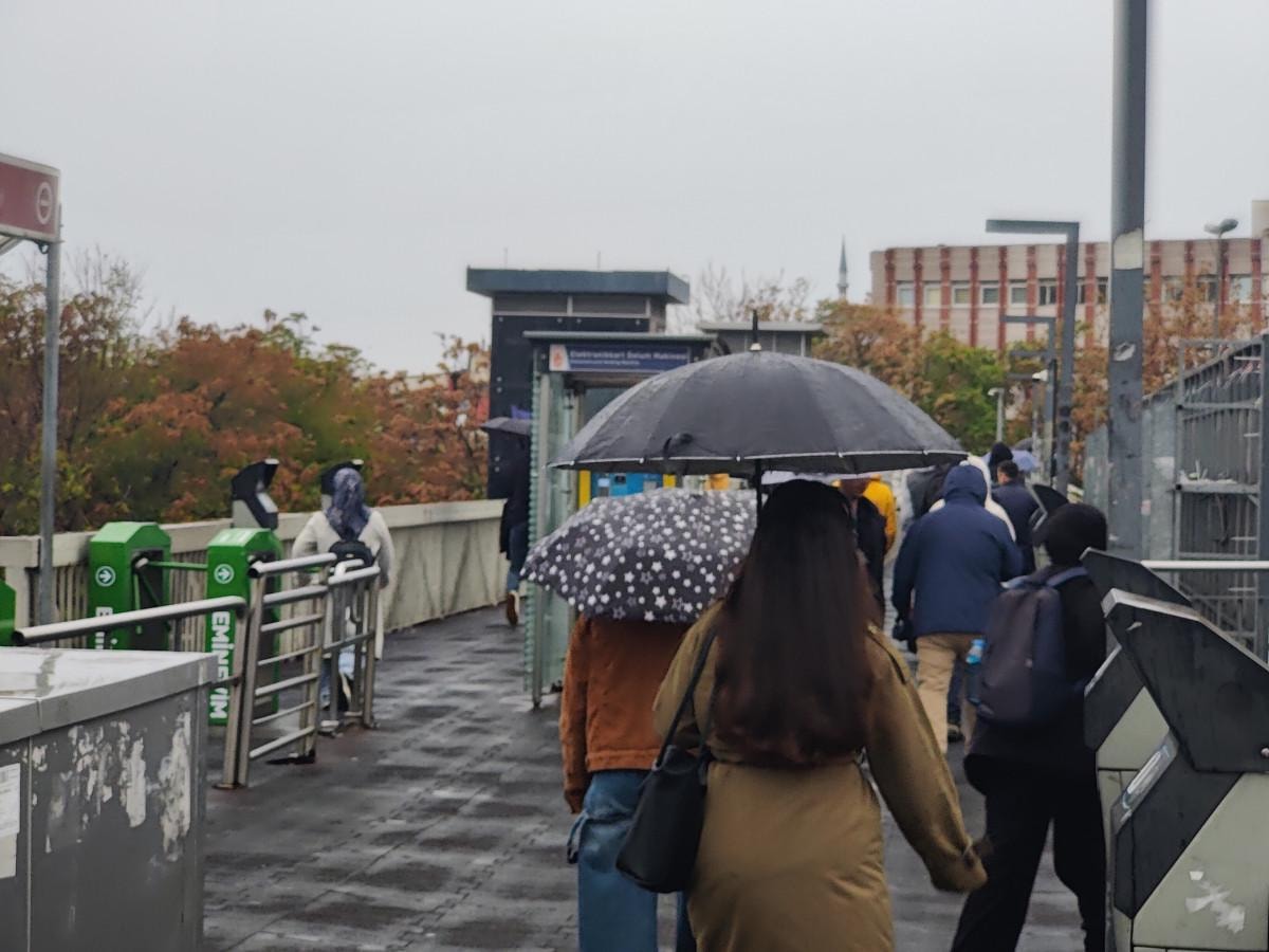Meteoroloji'nin uyarılarını dikkate alan bazı vatandaşlar, işe giderken şemsiyeleriyle yağmurdan korunmaya çalıştı.
