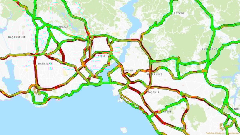 İstanbul Büyükşehir Belediyesi (İBB) Trafik Yoğunluk Haritasına göre, kentteki trafik yoğunluğu yüzde 71'e çıktı.