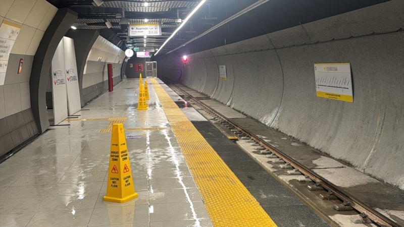 İstasyonun içinde su birikintisi oluşurken, görevliler suyu tahliye etti. İstasyona kaygan zemin yazılı uyarı tabelaları yerleştirilirken, bazı yerler de paravanla kapatıldı.