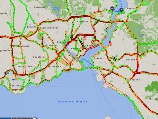 İstanbul Büyükşehir Belediyesi'nin (İBB) trafik yoğunluk haritasının verilerine göre yoğunluk, yüzde 80'e dayandı.