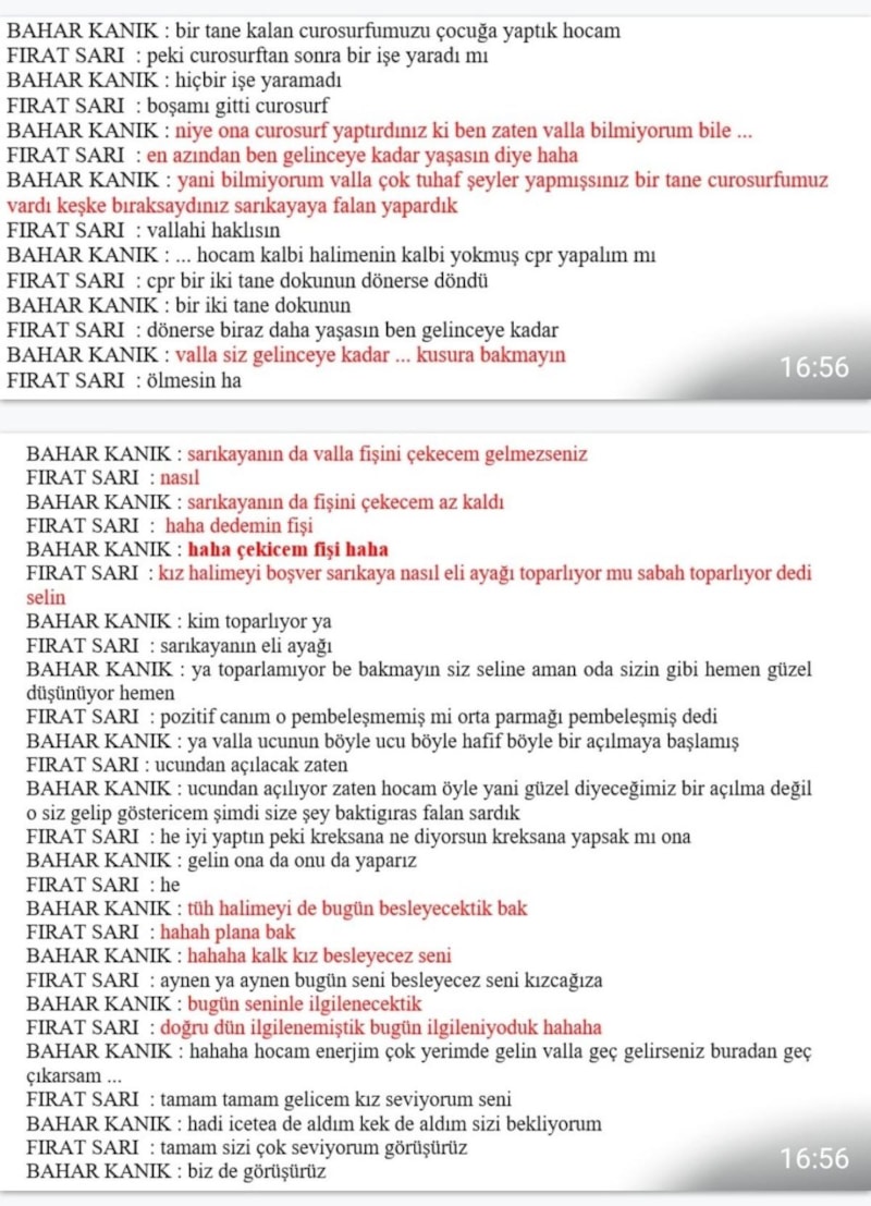 Çorlu Reyap Hastanesi hemşiresi Bahar Kanık ile örgüt lideri Fırat Sarı arasındaki konuşmalar şu şekilde: