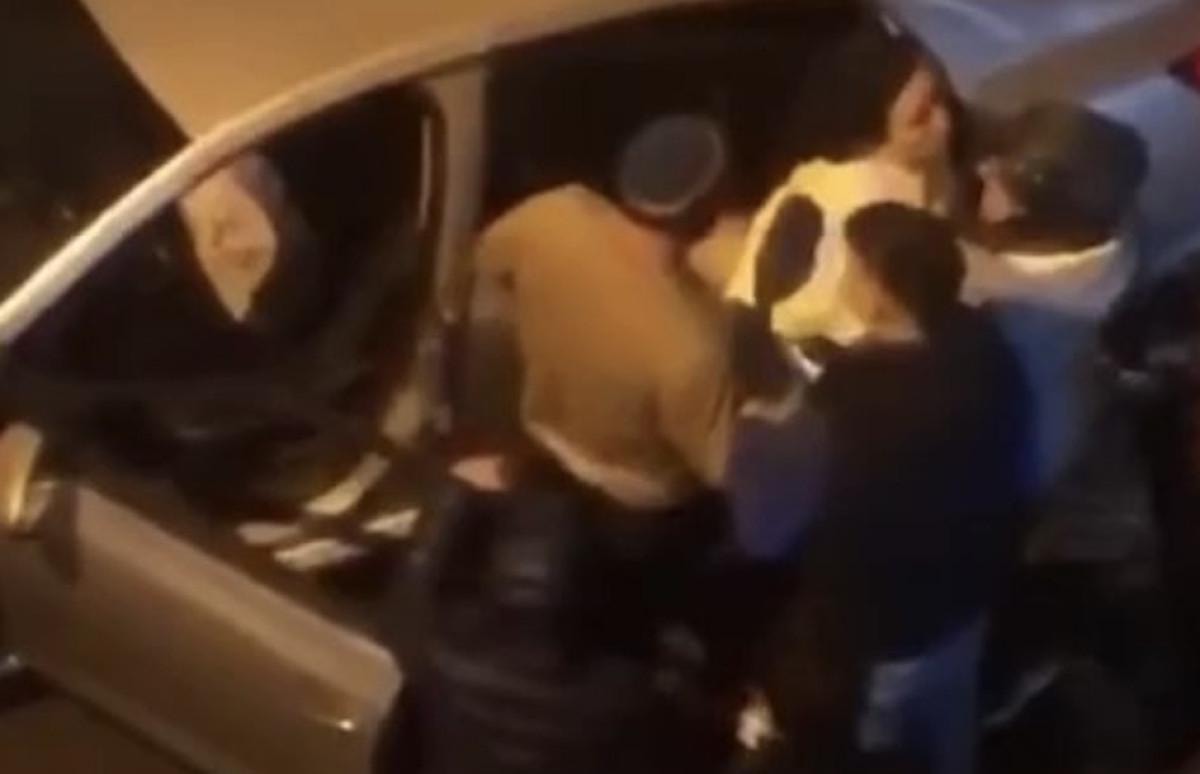 Çevredekiler kavgayı ayırmaya çalışırken, sürücünün otomobildeki eşi ise çığlık atarak kavgayı bitirmeye çalıştı.