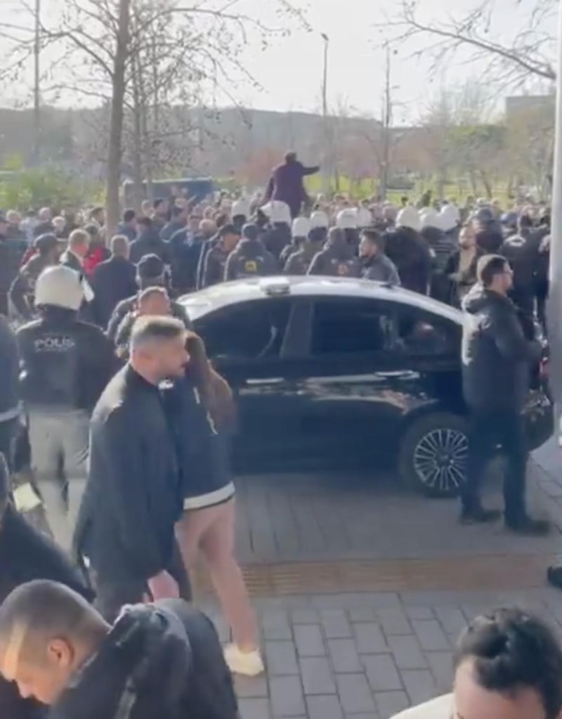 Arbede çıkartan öfkeli grup binaya girmeye çalıştı.