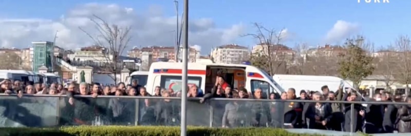 İBB'nin UKOME toplantısını yaptığı salonun önünde toplanan taksiciler binayı taşladı.