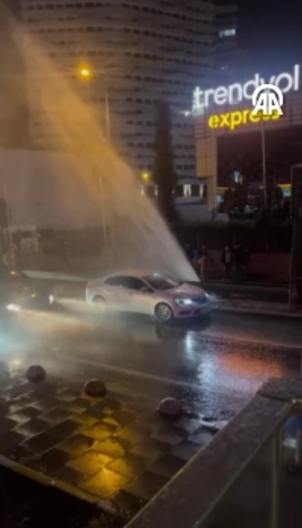 Etrafın adeta göle döndüğü olay sırasında caddeden geçen yayalar sudan etkilendi.
