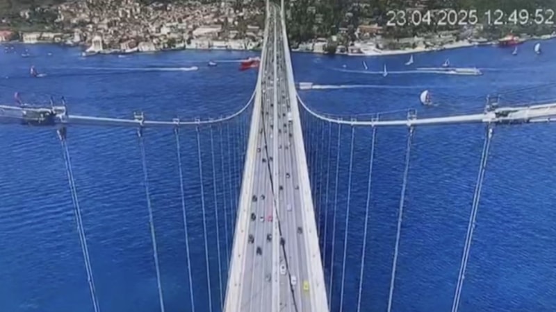 Silivri açıklarında 23 Nisan günü meydana gelen 6,2 büyüklüğündeki deprem, 15 Temmuz Şehitler Köprüsü'ndeki güvenlik kamerası tarafından kaydedildi.