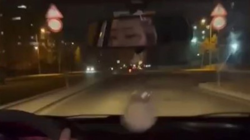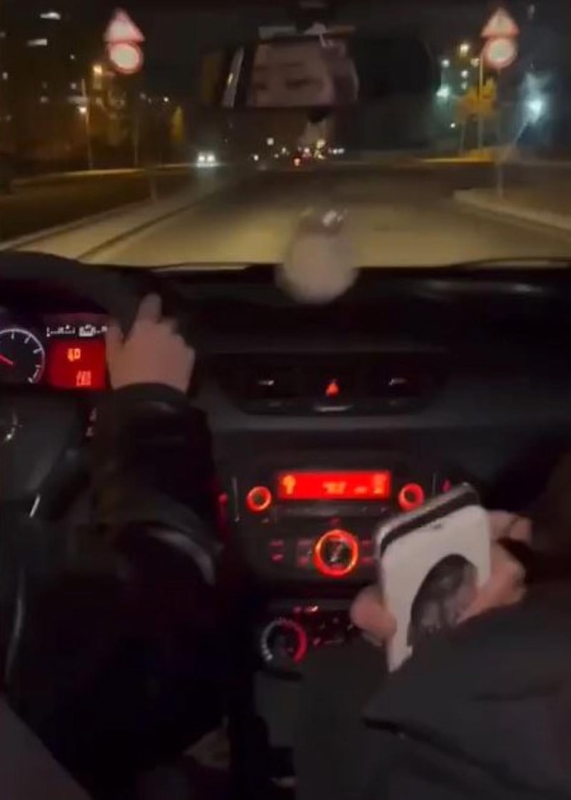 Sosyal medyada paylaşılan görüntülerde, sürücünün direksiyonu sağa sola savurması ve yanındaki yolcunun sevinmesi görülüyor.