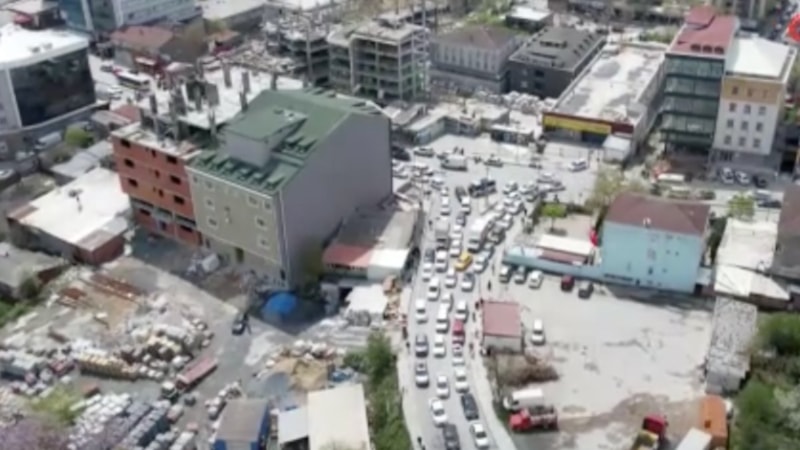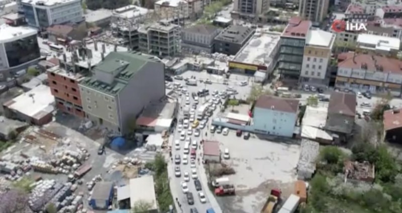 Sultangazi’de bulunan Yayla Mezarlığı’na gitmek isteyen vatandaşların trafikte oluşturduğu kilometrelerce kuyruk ise dron ile havadan görüntülendi.