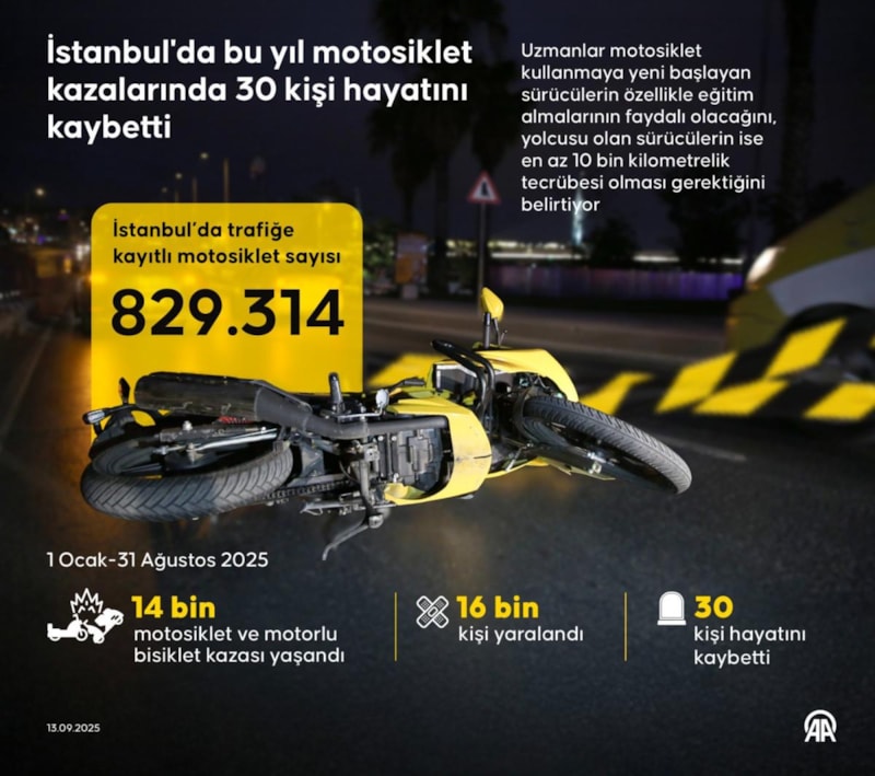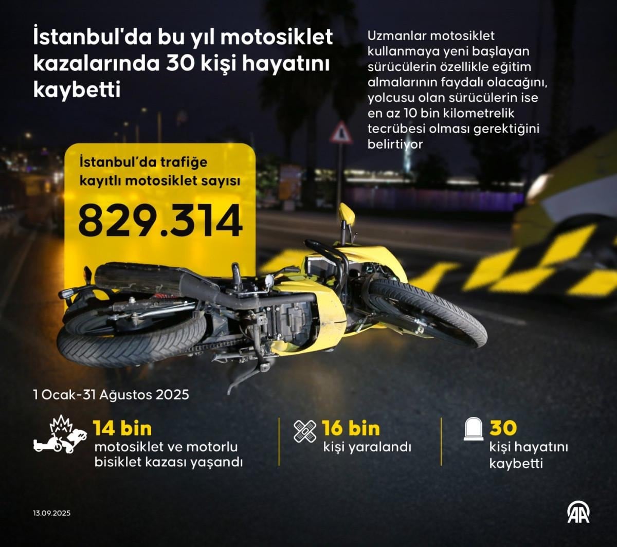 İstanbul'da bu yıl meydana gelen 14 bin motosiklet ve motorlu bisiklet kazasında 16 bin vatandaş yaralandı, 30 kişi yaşamını yitirdi.