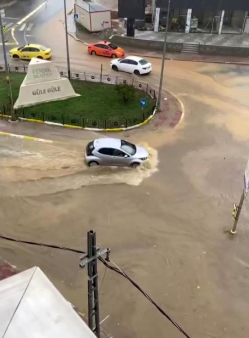 Bazı araçların ise göle dönen yollarda mahsur kaldığı görüldü. O anlar vatandaşların cep telefonu kamerasına yansıdı.