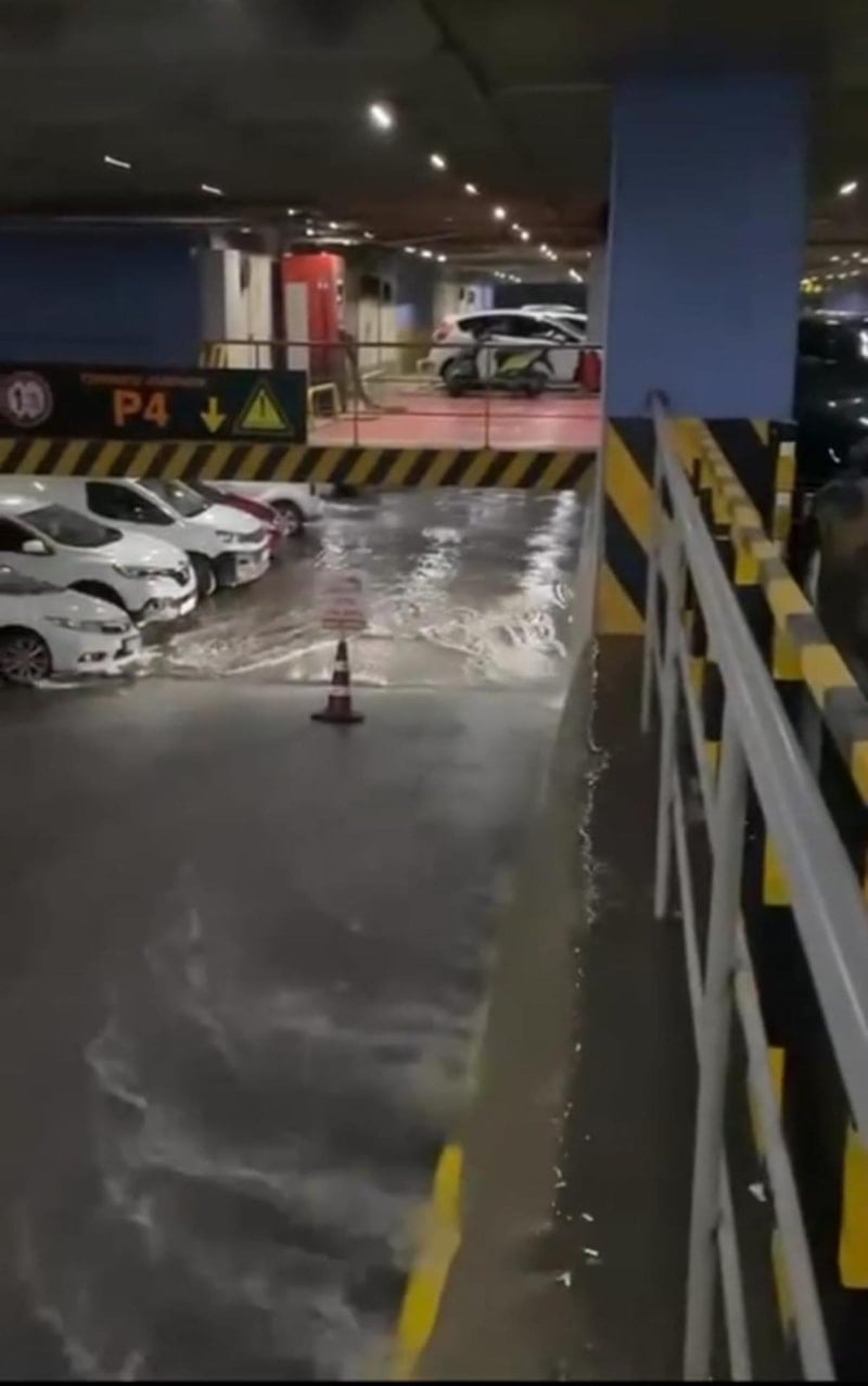 Yenimahalle ilçesi Batıkent semtindeki kapalı pazar yeri ile bir alışveriş merkezinin kapalı otoparkını su bastı.