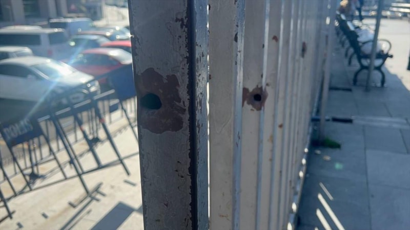 Öte yandan, saldırganlarla polis arasındaki çıkan çatışmanın şiddeti, demir korkuluklara isabet eden kurşun izleriyle gün yüzüne çıktı.