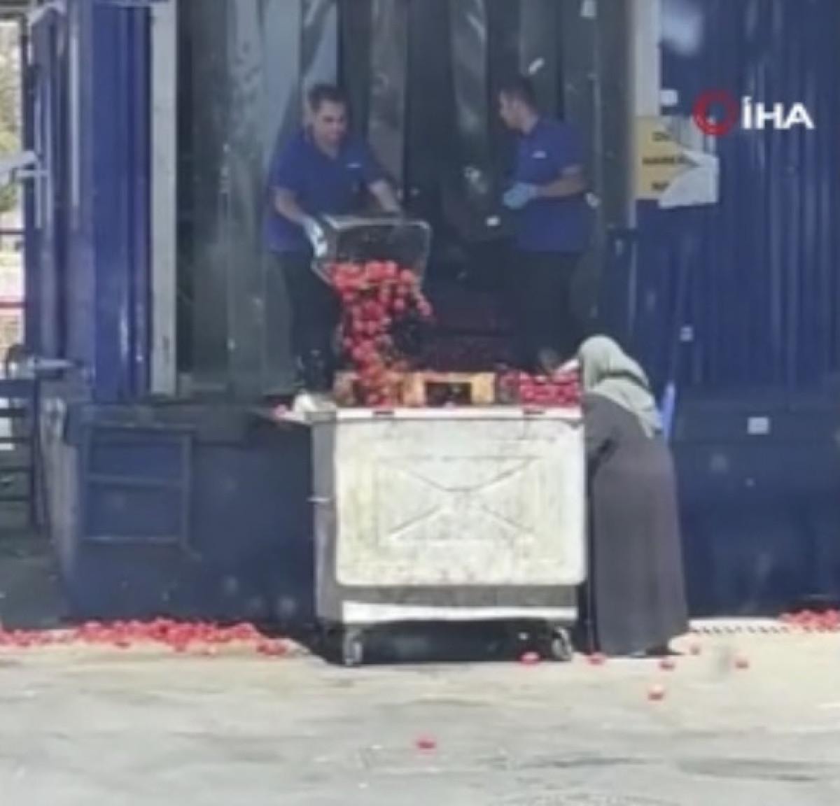 Öte yandan, olay esnasında çevrede bulunan bir vatandaşın çöpe atılan domatesleri almaya çalıştığı görüldü.
