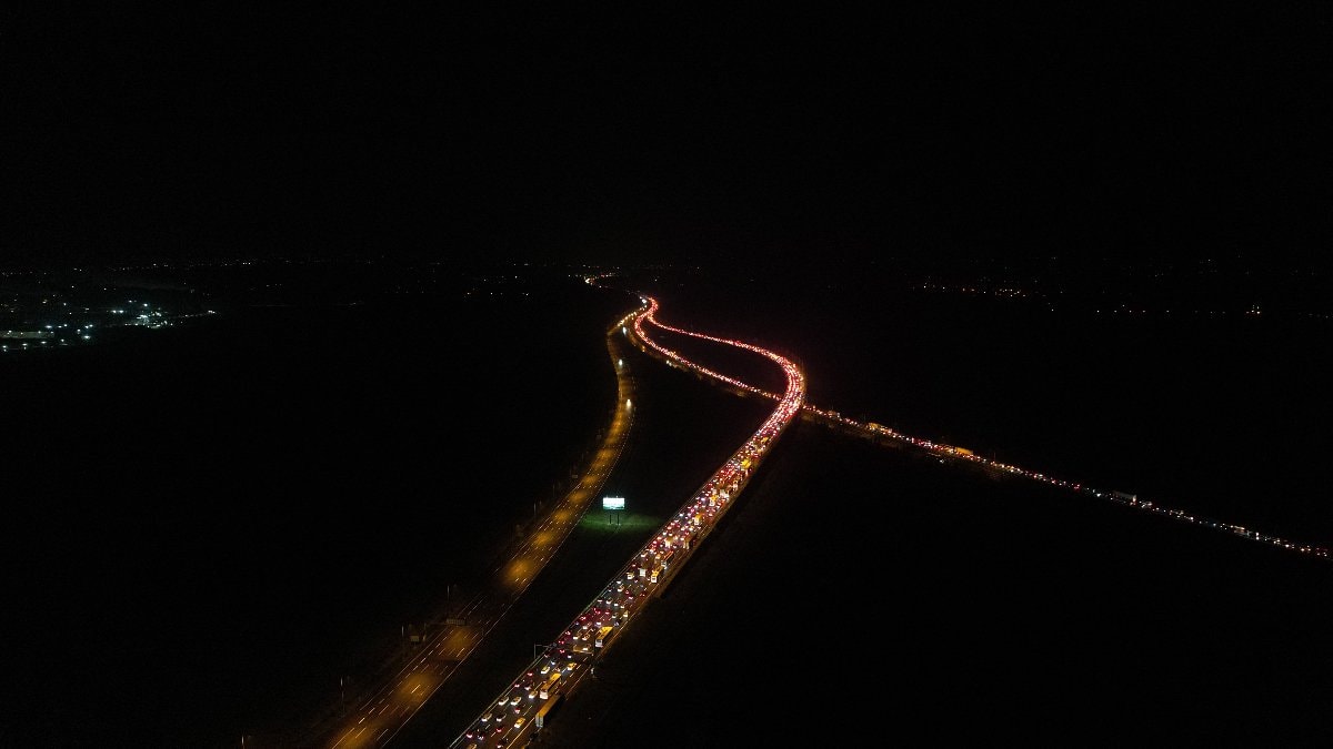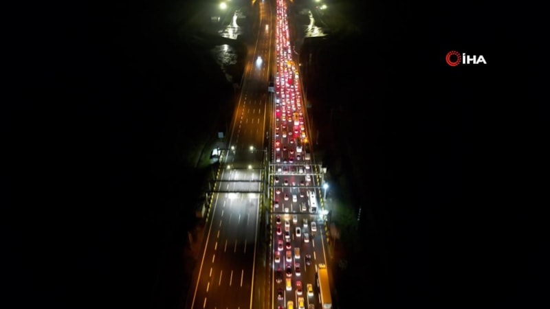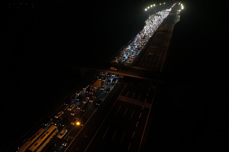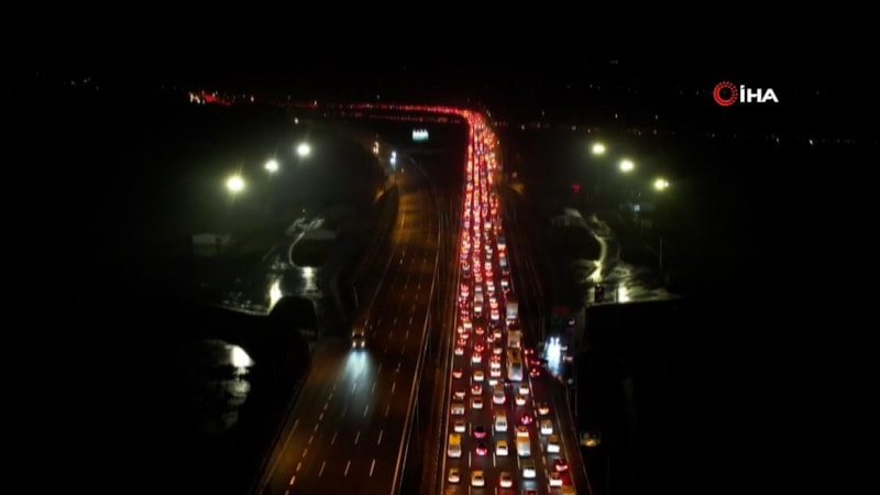 İstanbul'u Anadolu'ya bağlayan otobanların kesişim noktalarında oluşan trafik yoğunluğu havadan da görüntülendi.