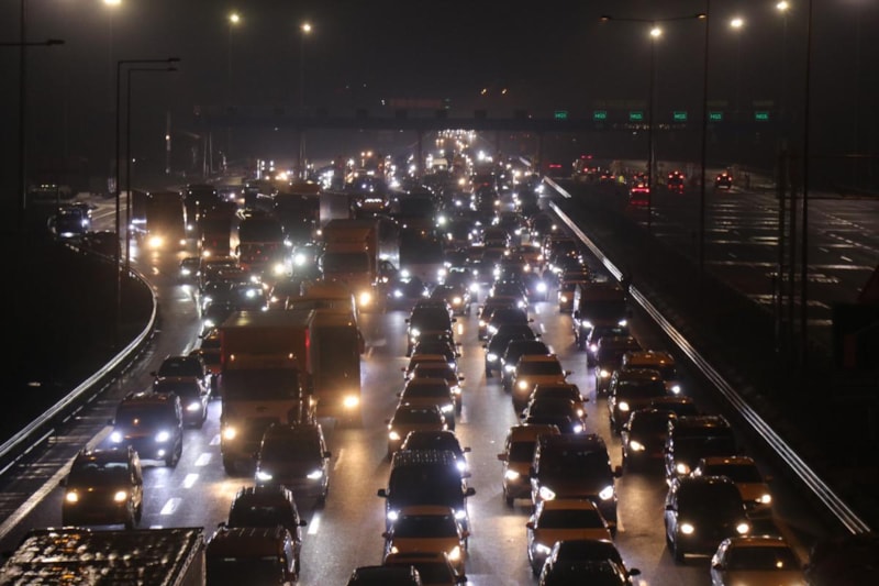 Anadolu Yakası'nda TEM Otoyolu Ataşehir mevkiinde trafik çift yönlü ağır seyretti.