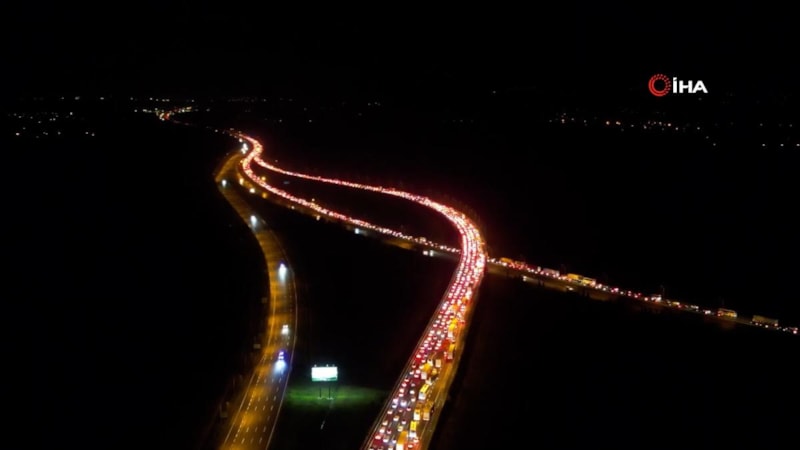 Ramazan Bayramı tatili nedeniyle dün akşam yola çıkanlar otobanlarda yoğunluğa neden oldu. Otoyolların kesişim noktasında trafik durdu.