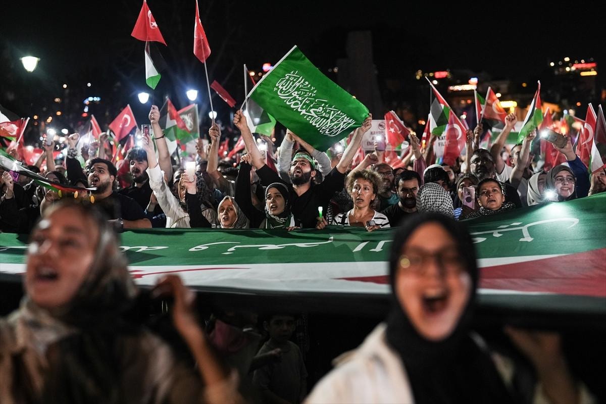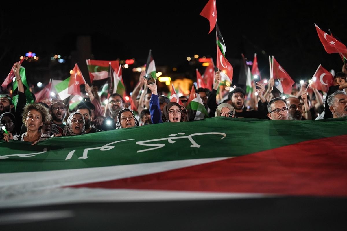 Çeşitli sivil toplum kuruluşlarından binlerce kişinin katıldığı yürüyüş sırasında, "Katil İsrail, Filistin'den defol" sloganları atıldı, tekbir getirildi.