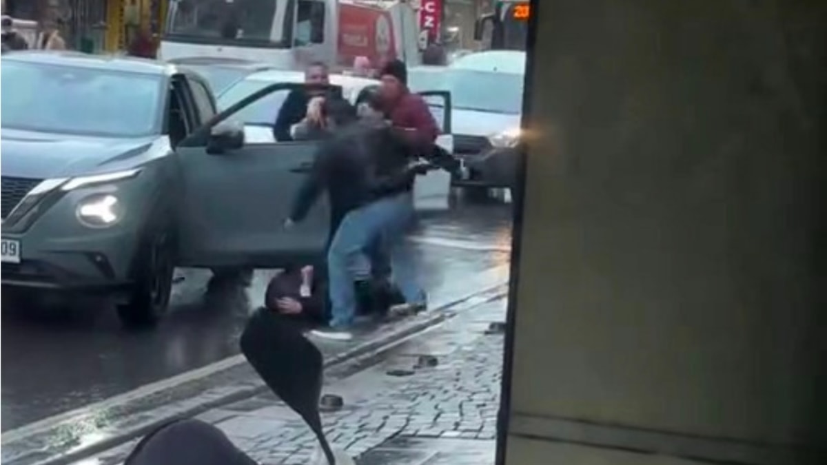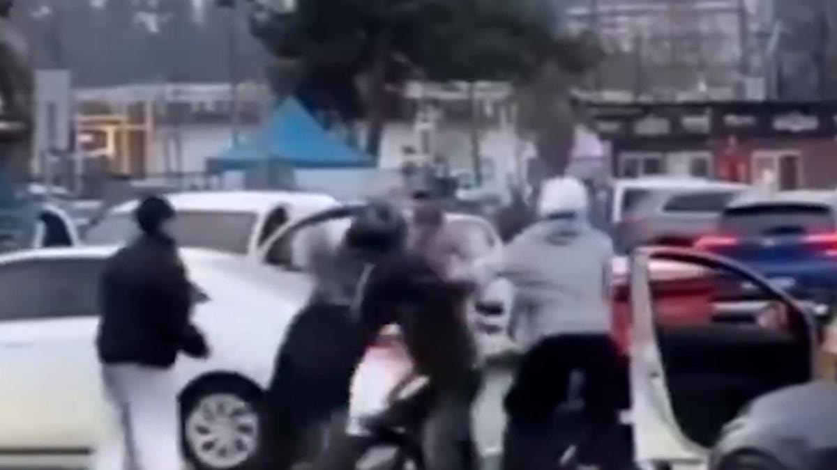Tartışmanın büyümesiyle 3 kişi, 1 araç sürücüsüne tekme ve yumruklarla saldırdı.