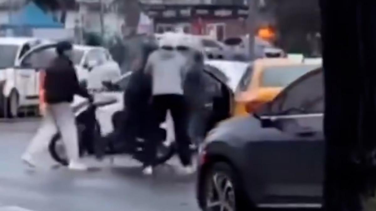 Pendik'te sahil yolunda seyreden bir kurye ile taksi şoförü arasında yol verme meselesi nedeniyle tartışma çıktı.