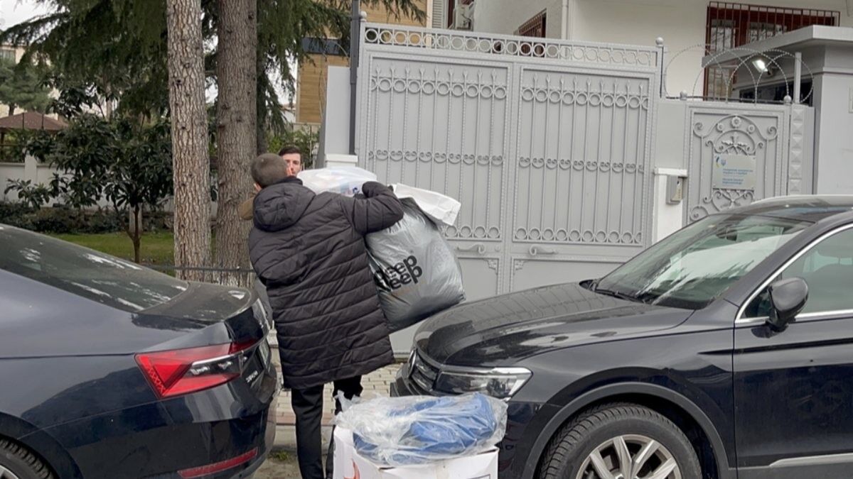 İstanbul'da yaşayan Ukraynalıların yanı sıra Türk vatandaşları tarafından hazırlanan yardım kolileri, Yeşilköy'deki başkonsolosluğa teslim ediliyor.