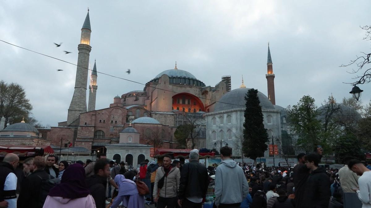 Bayram namazını Ayasofya Camii'nde kılmak isteyen vatandaşlar, sabahın erken saatlerinde camiye akın etti. Caminin içerisi namaz vaktinden önce dolarken, içeride yer bulamayan vatandaşlar ise seccadeleriyle caminin avlusunda saf tuttu.