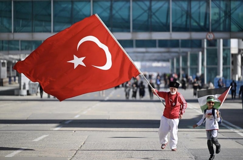Ellerde Türk bayrağı ve Filistin bayrağı