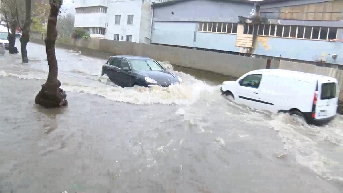 Sarıyer İstinye'de sağanak yağışın ardından Balabandere Caddesi'ni su bastı.
