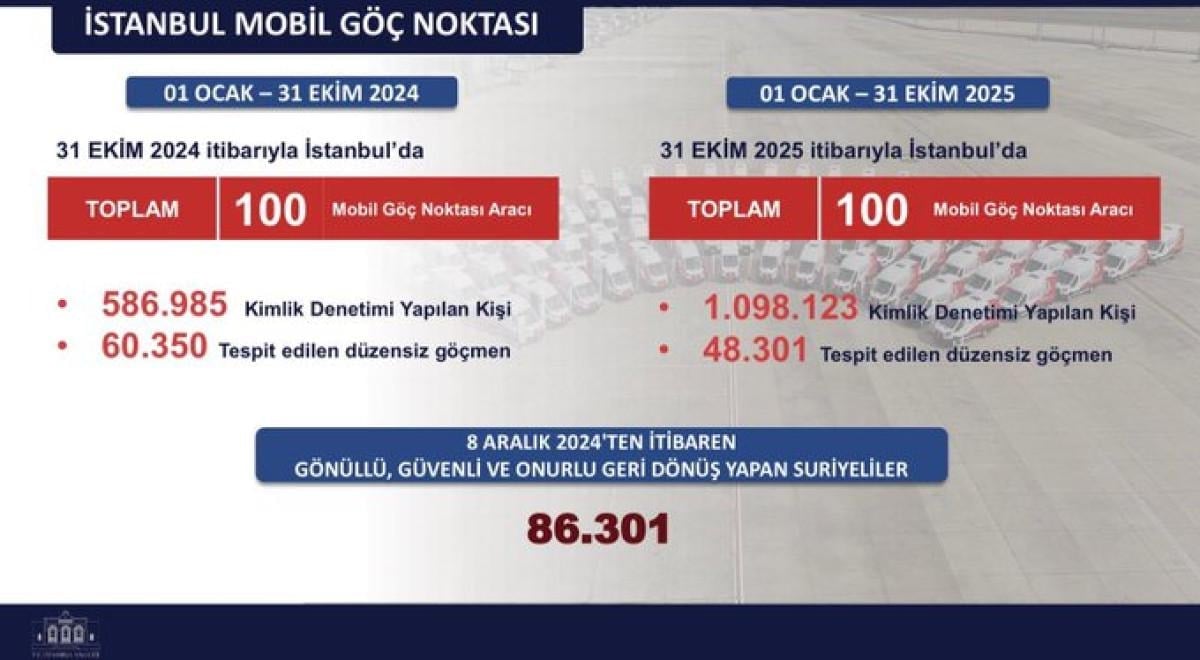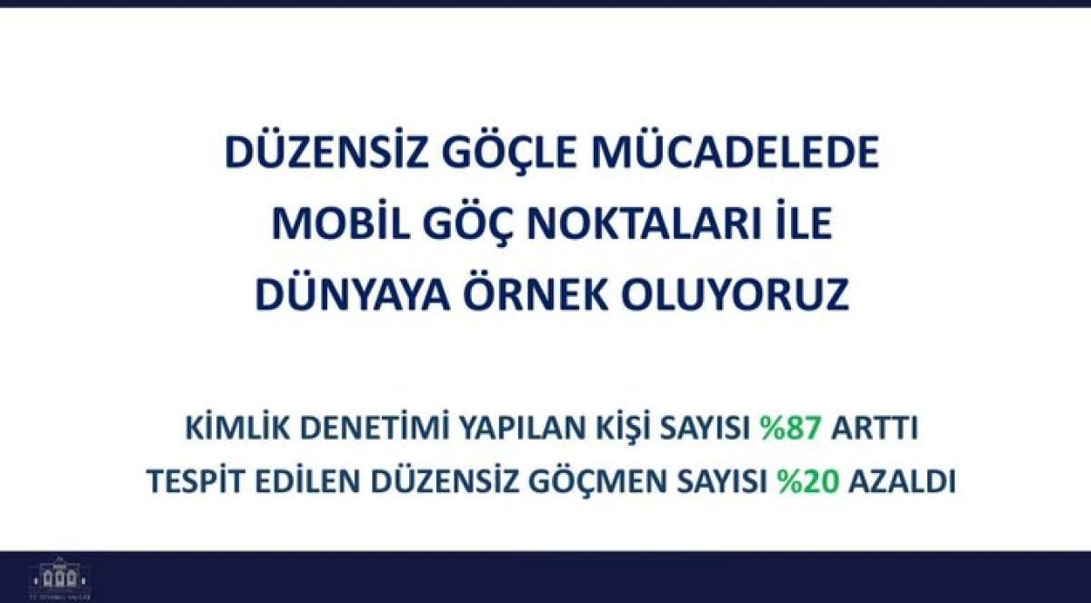 İşimizi kolaylaştıran Mobil Göç Noktaları sayesinde denetim sayılarımız artmaya, tespit edilen düzensiz göçmen sayıları düşmeye devam ediyor. Kimlik denetimi yapılan kişi sayısı yüzde 87 arttı.
