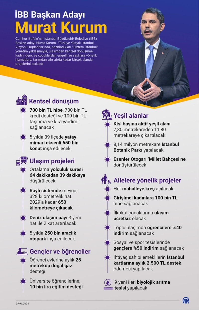 Trafikten kentsel dönüşüme, gençlerin refahından emeklilere kadar her detayı titizlikle detaylandıran Kurum, "Siztem İstanbul" projesini tanıttı.