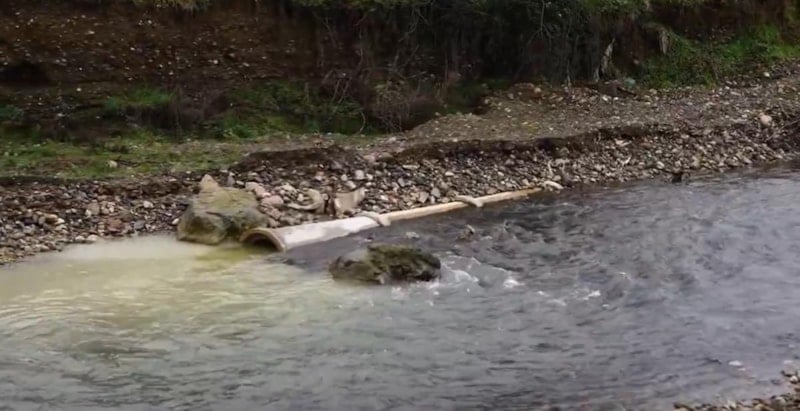 Melen Çayı'na kanalizasyon suyunun karıştığı anları ise Düzce Belediye Başkanı Dr. Faruk Özlü, sosyal medya hesabından paylaştı.