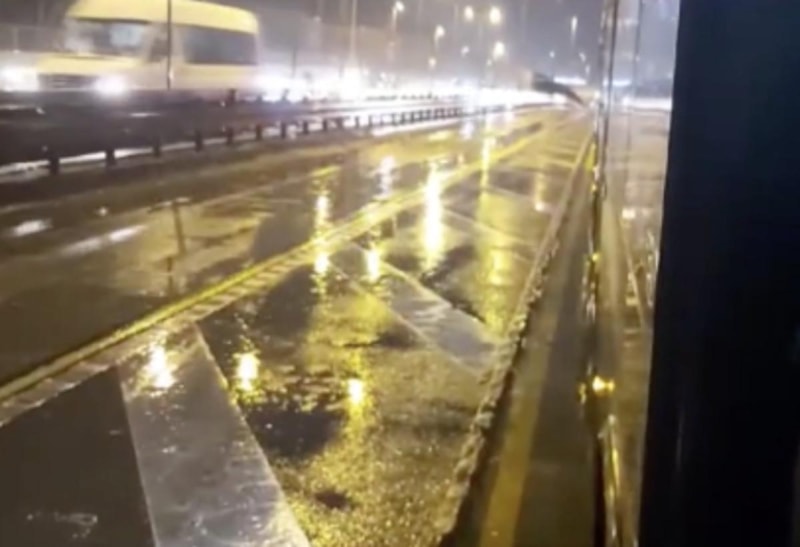 İş çıkış saatine denk gelen arıza trafiğe sebep olurken, o anlar vatandaşların cep telefonuna yansıdı.