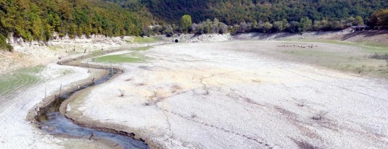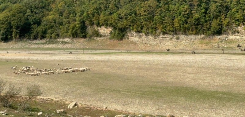 Barajın yüzeyi tamamen kurudu.