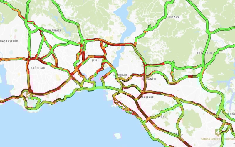 D-100 kara yolu Kartal-Kadıköy arası her iki yönde trafik ağır ilerliyor. TEM otoyolu Samandıra-Ataşehir arasında da her iki yönde trafik ağır ilerlerken, Şile otoyolu Altunizade-Ümraniye arasında yoğunluk görülüyor.