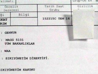 3 sayfa ve 20 maddeden oluşan bildirinin eklerinde ise Sıkıyönetim Komutanlıkları, Sıkıyönetim mahkemelerinde görevlendirilecek personel listeleri, Ankara ve İstanbul Asayiş ve Takviye Planı ile diğer sözde atama kararları bulunuyor.