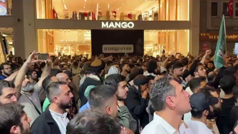 Leman dergisinde yayınlanan ve Hazreti Muhammed'i (s.a.v) hedef alan karikatüre tepki gösterenler, derginin önünde toplandı.