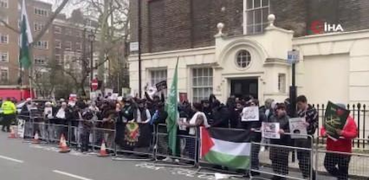 İngiliz polisi, Büyükelçilik önünde geniş güvenlik önlemi aldı.