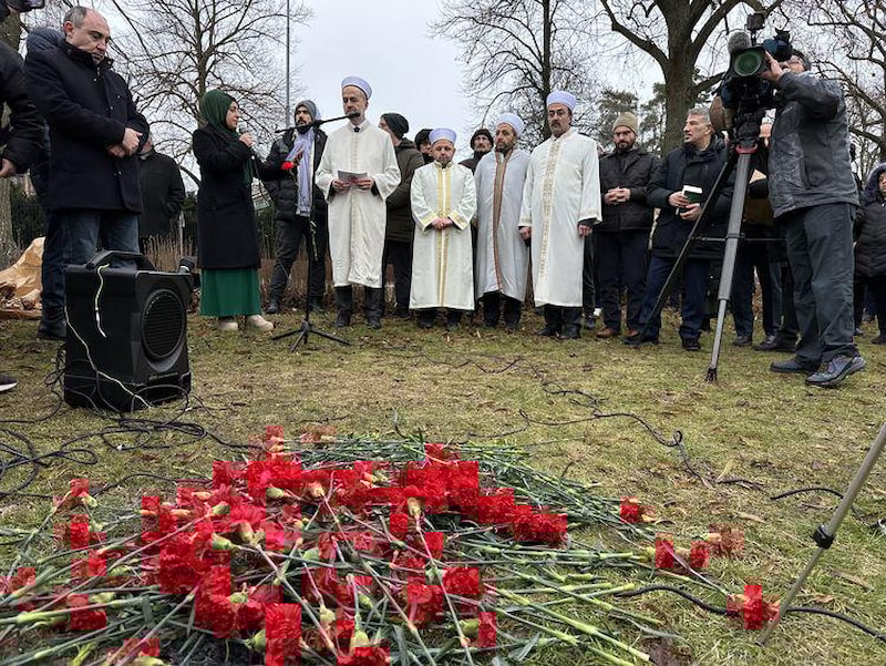 İsveç'teki Türk STK'lerinin ortak etkinliğinde İsveç Diyanet Vakfı Din Görevlisi Serdar Bükme, Kur'an-ı Kerim okuyarak dua etti. Bükme'nin seslendirdiği Kur'an ayetlerinin Türkçe ve İsveççe mealleri de okundu.
