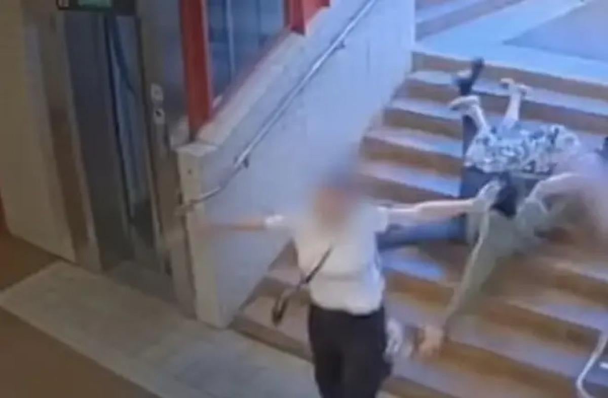Yaşlı kadının kolyelerini çalmaya çalışan şahıs, bir de 91 yaşında kadını merdivenlerden itti.