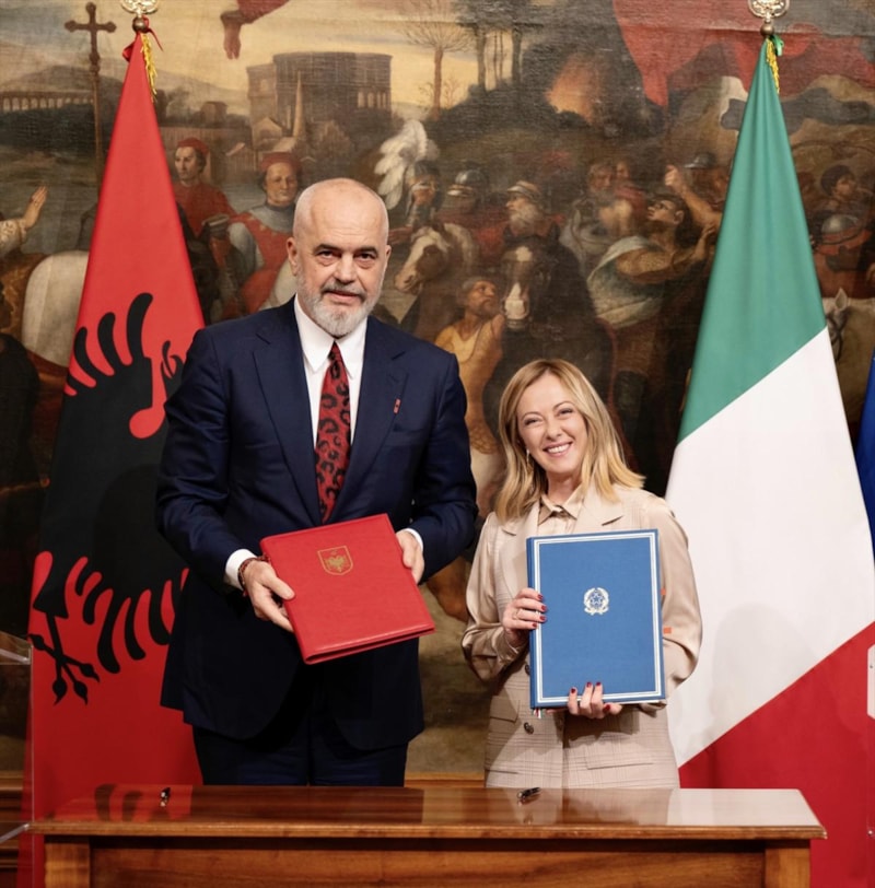 Arnavutluk topraklarında İtalya'nın idare edeceği göçmen merkezlerinin kurulmasına yönelik bir anlaşma imzalandı. Buna göre anlaşmada, Arnavutluk topraklarında 3 bin kadar kişiyi barındırabilecek göçmen merkezleri kurulması öngörülüyor.