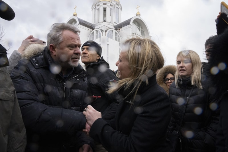 Meloni, daha sonra Aziz Andrew Kilisesi ve Rus bombardımanından en çok etkilenen kentlerden biri olan Irpin’i ziyaret etti.