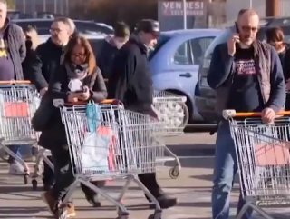Marketlere akın eden İtalyanlar, durumun daha da kötüye gitmesinden endişe ederek stok yapmaya başladı. Marketler önünde uzun kuyruklar oluşturan halk, rafları silip süpürdü.