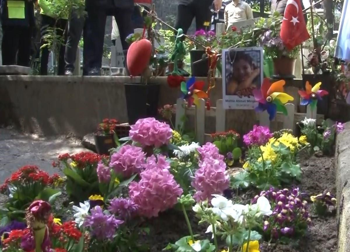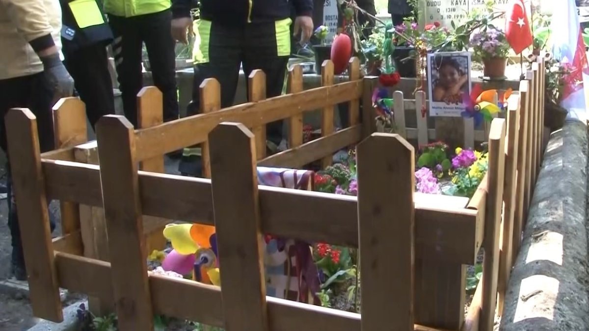 Ayrıca dağılan oyuncaklar da toplanarak kabrin başına kondu.