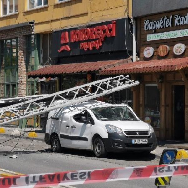 Öte yandan kırılan merdivenin yol üzerine düşmesiyle yolda bulunan otomobilde ve merdivenin düştüğü binanın çatısında hasar oluştu. Olay yerine gelen polis ekipleri ve savcı, incelemelerde bulundu. İtfaiye ekipleri ise binadaki zarar gören mermerleri, düşmemesi için yerinden söktü.