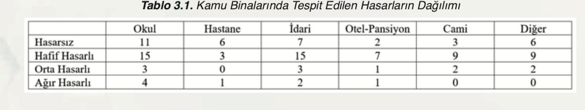 Raporda binaların yaşından malzeme eksikliğine kadar yıkımın nedenleri şöyle ifade edildi: