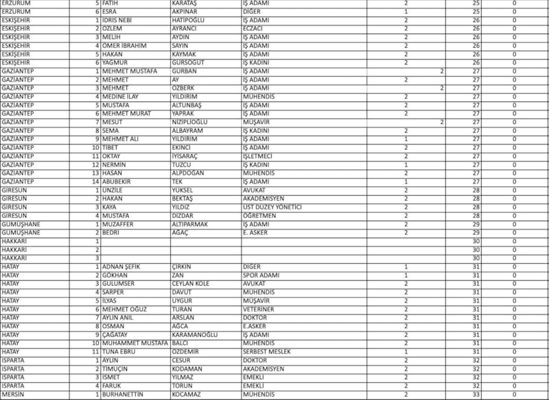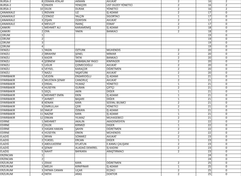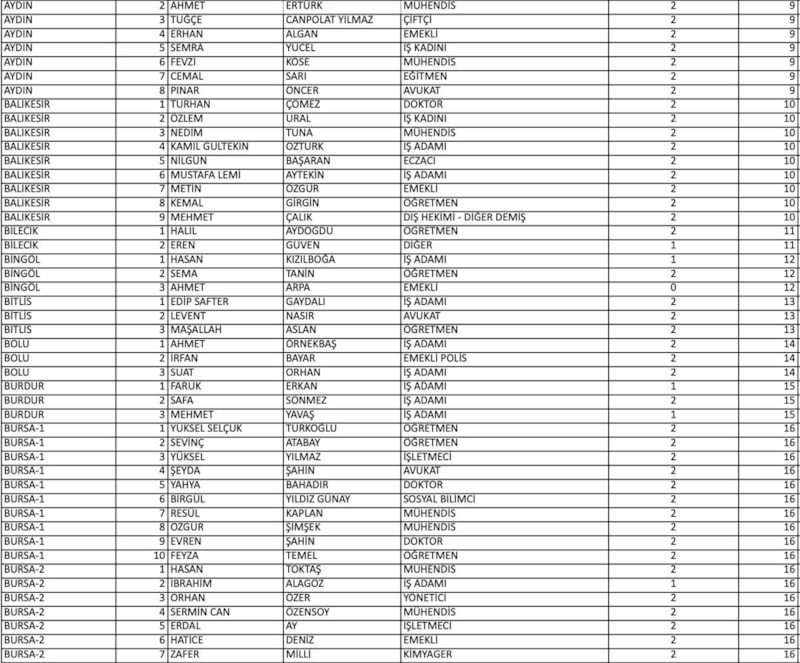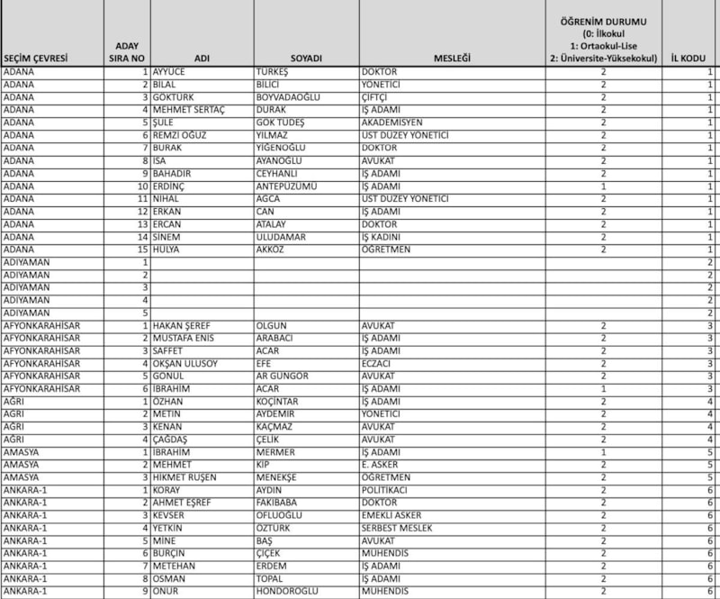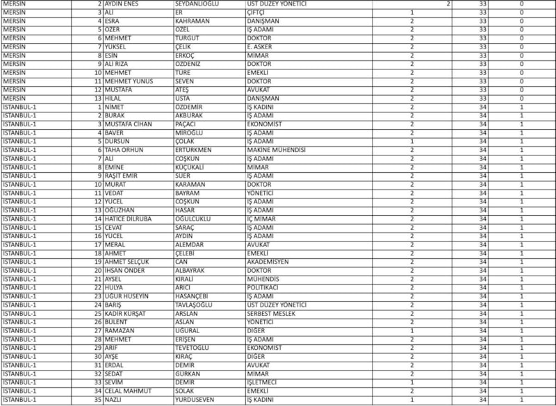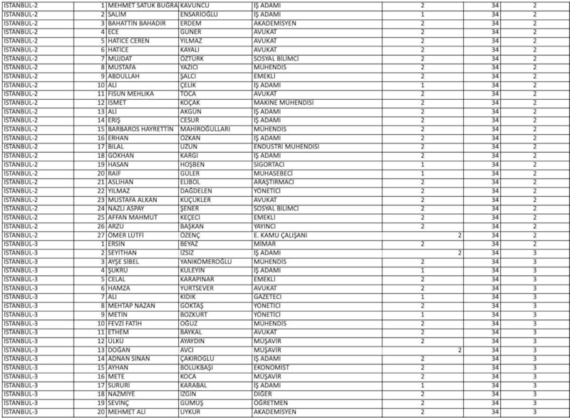 Bir diğer yandan listeye göre, Buğra Kavuncu’nun İstanbul 2. Bölge 1. Sıradan, eski milli futbolcu Gökhan Zan’ın Hatay 2. Sıradan, eski futbolcu Ünal Karaman’ın ise Konya 2. Sıradan listeye girdiği görüldü.