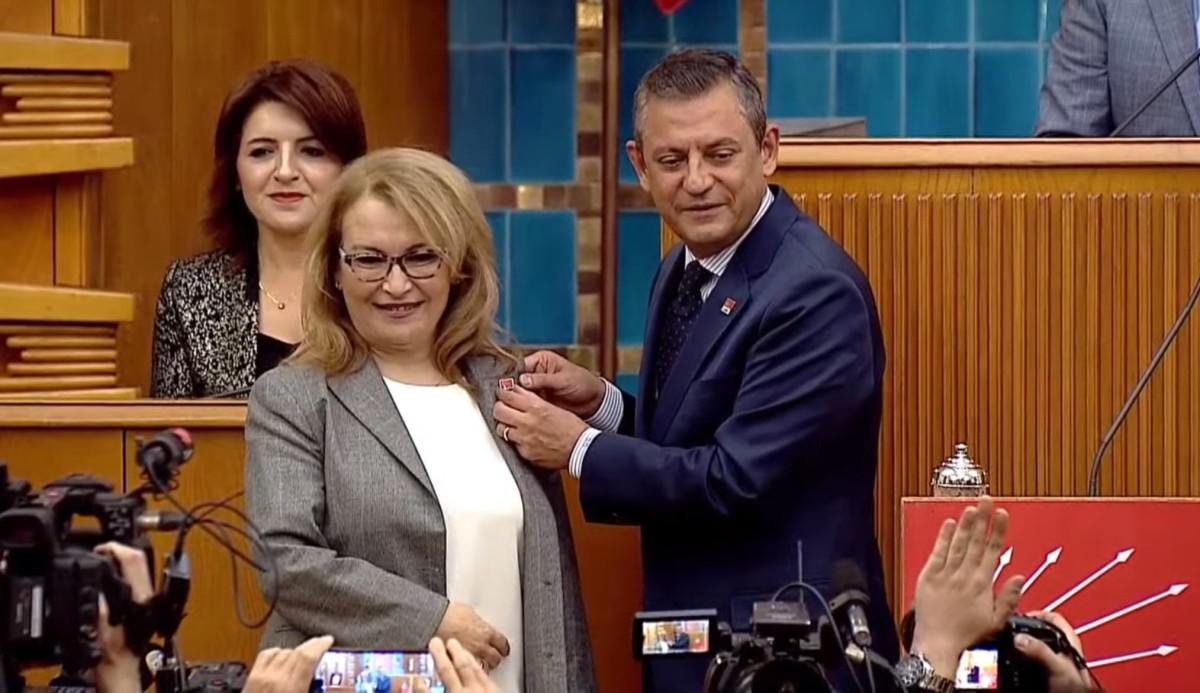 Özgür Özel, partisinin Meclis’te gerçekleştirdiği grup toplantısında İstanbul Milletvekili Ayşe Sibel Yankıömeroğlu'na CHP rozetini taktı.