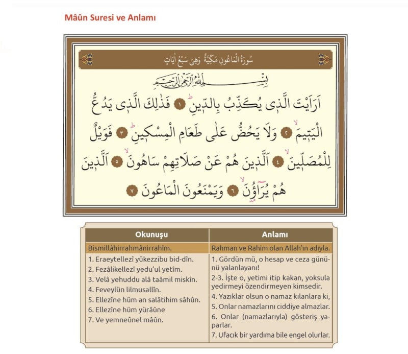 Ma'un Suresi'nin anlamı şu şekildedir: